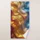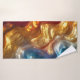 Enhance your bathroom with this luxurious towel set featuring a metallic oil slick design in vibrant shades of gold, blue, and orange. The intricate swirling patterns and shimmering details create a dynamic and elegant look, perfect for adding a touch of sophistication to your bath decor.