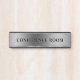 Conference room door sign design featuring a shiny, smooth silver background and custom black text.