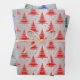 This unique, modern, hand drawn design features green, red, blue Christmas trees pattern with intricate sparkling, glitter details on faux foil silver background. This wrapping paper is an excellent addition to your Christmas holiday celebration.