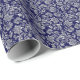 Metallic Silver & Dark Blue Vintage Damasks Wrapping Paper