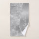 Easily personalize this silver brushed metal and glamourous faux glitter patterned bath towel set with your own custom name.