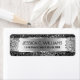 Elegant metallic silver grey stripe over black background covered with white ham lace pattern. Black lace accent on metallic silver stripe. Customizable return address label template.