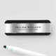 Elegant and slick metallic silver and black customizable black text for personalized name tag.