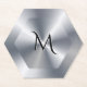 Metallic silver texture personalized monogram paper coaster