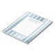 Elegant and stylish metallic soft blue and white striped custom notepad with text, "From the desk of YOURNAME". Contact us for help with customization or to request matching products.