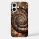 This digital artwork showcases a hypnotic spiral formed by intricate **metallic tiles** in earthy **bronze**, **copper**, and **charcoal** hues. The spiral leads the eye toward a central vanishing point, creating a powerful illusion of depth and infinity. The tiles are textured to mimic real materials, giving a tactile, almost tangible quality to the otherwise surreal form. The art style could be classified as **optical and surreal abstract**, blending digital precision with an organic, rustic aesthetic. It’s a visual representation of cycles, time, or thought spirals, drawing the viewer into a meditative or philosophical space.