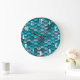 Metallic Turquoise Teal Mermaid Scales Pattern Large Clock