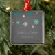 Ornement fait sur commande de nom et de date de mariage d'hiver dans le gris de charbon de bois foncé élégant et moderne, bleu d'aqua de turquoise et blanc motif de fête turquoise de flocons de neige. Un cadeau élégant de Noël pour la famille et les amis ou pour décorer votre arbre ou maison de Noël pour les vacances. La manière parfaite de se rappeler votre jour du mariage d'hiver.