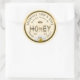 Abeille au miel réaliste et marguerite avec le mot "HONEY" imprimé dans une police en or gaufré avec des gouttes. Personnalisez-vous avec votre nom, emplacement et poids du filet miel. Conversions de poids net miel : 8oz (227g), 12oz (340g), 16oz (454g), 32oz (907g), 5lb (2,27kg).