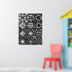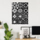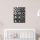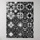 Poster in a four-way metamorphosis of arabesque medallions in black and white