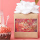 The angel Metatron, one of the Seraphim, sits on an ohterworldly golden throne floating in space, sports thirty-six pairs of wings. He has three faces and wears an off-white robe with a celestial motif over irridescent red-orange wings. Eyes designs cover each of the feathers. This piece is done in an expanded analogous colour scheme with red as the dominant colour. Watercolor and ink pen on hot press watercolor paper.