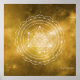 The sacred geometry of Metatron's Cube with a yellow universe background is paired with the colour of the solar plexus, the seat of the ego.