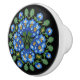 This decorative knob highlights a Métis beadwork–inspired design of vibrant blue forget-me-not blossoms with golden centres and leafy green accents. Arranged in a symmetrical medallion against a deep black background, the pattern captures the beauty of traditional beadwork while serving as a distinctive accent for your home.