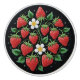 Presenting a First Nations Métis beadwork–inspired design of ripe red strawberries with leafy green vines and delicate white blossoms. The clustered arrangement glows against a deep black background, capturing the spirit of traditional bead artistry while serving as a colourful and functional home accent.