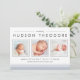 Announce your sweet babe's arrival with our modern, neutral collage style birth announcements, featuring three of your favourite newborn photos in square format, accented with modern typefaces and striped elements in soft black and neutral grey. Personalize with your baby's name, birth stats and family message using the fields provided.