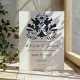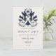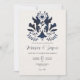 This Mexican Blue Modern Minimalist Elegant Wedding Invitation design features a charming symmetrical motif in a deep navy blue, set against a soft textured off-white background. At the centre are two stylized lovebirds facing each other, holding a delicate flower stem between them, crowned by a heart within a heart—symbolizing unity and romance. Surrounded by organic shapes, leafy flourishes, and gentle curves, the design radiates folk-art elegance with a modern minimalist touch, leaving ample space below for personalized wedding text.