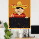 Illustration of a cartoon mexican or south-american chef cook holding red hot chili pepper