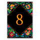 Add a burst of festive flair to your celebration with this Mexican Colourful Wedding Table Number, featuring vibrant florals and traditional fiesta-inspired patterns. Bright hues of red, yellow, turquoise, and green dance around lively blooms, capturing the joyful spirit of a Mexican wedding. Bold, easy-to-read numbering is framed by folkloric details and vivid designs, creating a cheerful and elegant way to guide guests to their seats. Perfect for infusing your reception with warmth, culture, and unforgettable colour.