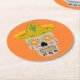 This awesome paper coaster features a graphic design image of a Mexican Day of the Dead (Dia de los Muertos) inspired skull. The skull is a pale grey colour and is wearing a yellow sombrero. It has gold teeth and Mexican Sunflowers, also called Tithonias< instead of eyes. The sombrero has a cactus on it and is covered in pretty swirl patterns and red and green Chilli peppers. The skull itself is covered in pretty coloured flowers of different types.
