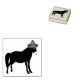 This awesome wood art stamp features a pale brown donkey with a dark brown mane and tail. The Donkey is ready to celebrate the Day of the Dead, Dia de los Muertos. The Donkey is wearing a sombrero covered in red and green stars, carrots, colourful swirls, cherries and red and green chillies. There is a flower with orange petals and a yellow centre in the middle of the hat, called a Tithonia, or Mexican sunflower.