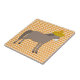 This awesome tile features a pale brown donkey with a dark brown mane and tail. The Donkey is ready to celebrate the Day of the Dead, Dia de los Muertos. The Donkey is wearing a sombrero covered in red and green stars, carrots, colourful swirls, cherries and red and green chillies. There is a flower with orange petals and a yellow centre in the middle of the hat, called a Tithonia, or Mexican sunflower.