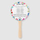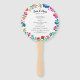 Perfect for weddings, this two sided, round fan program features easy to personalize text with the wedding ceremony events on one side and the wedding party listed on the other side with a space for a heartfelt written message from the couple to be. Perfect for a destination wedding or just a Mexican themed one, this program design features a frame of flowers and foliage inspired by the colourful embroidery of native Mexican artisans.