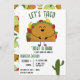 Mexican fiesta let's taco 'bout a baby Baby Shower Invitation. With a happy fun pregnant taco and a cute cactus on the front. And a Mexican pattern on the back with taco's, nacho, lime, cactus and coloured pepers. Original design.