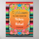 Mexican Fiesta "welcome to our wedding" sign with faux gold glitter, flowers and aztec rug background