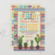 Colourful with faux texture, Mexica Fiesta Rehearsal dinner invitations. Features a row of potted cactus and succulents, fun fonts, margaritas and a colourful aztec pattern background. Can change to any mexican themed party!
