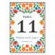 Mexican Floral Colourful Botanical Flowers Wedding Table Number