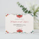 This Mexican Folk Art Floral Botanical Fiesta Wedding Save the Date design features an intricate floral border in vibrant hues of red, pink, orange, and blue, creating a cheerful and lively frame for the invitation. The flowers are arranged with swirling vines and leaf motifs, giving the composition a harmonious flow and adding a sense of movement to the design. Small decorative details, such as dots and teardrop shapes, enhance the festive and folkloric feel, making this layout perfect for a joyful wedding celebration with a Mexican-inspired theme.