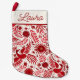 Mexican Folklore Pattern Script Name Red and White Small Christmas Stocking
