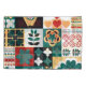 Ornament, geometric arrangement of elements, the composition of abstract flowers, red and green background, Mexican style, Vintage illustration