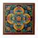 Mexican Huichol style flower ceramic tile 10/12