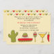 The fun begins the moment they open the envelope with this Mexican-theme invitation. The design features party flags, a cactus, a sombrero, maracas, a margarita cocktail and a chili pepper. Perfect for any south of the border celebration. (Vecteezy.com free cinco de mayo by aaravectors). The card is easy to customize with your wording, font, font colour, paper shape options and choice of six paper types.