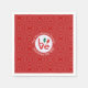 Personalized paper cocktail napkins with the Mexican LOVE FLAG. The word LOVE, using a heart shaped flag as the O, is featured in red letters inside a white, fractal circle of squiggly squares. The circle sits on a red, fractal background, also, of squiggly squares. Great for your guests at your next occasion or party to celebrate Mexico. Can be customized for any occasion.