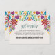 This Mexican Nuestra Boda Flowers Botanical Wedding Enclosure Card design showcases a rich and vibrant floral arrangement around the edges, with bold colours like red, orange, blue, purple, and yellow that create a festive and welcoming feel. The flowers are intricately combined with leafy patterns and small, detailed embellishments, giving the design a lively and textured look. The balance of bright, contrasting colours and the delicate, symmetrical arrangement make this an eye-catching option for a celebratory wedding stationery, especially one with a traditional or folkloric theme.
