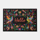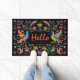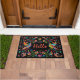 Personalize and Welcome Guest with this Unique "One of a Kind" Mexican Otomi Doormat! It Features a Mexican Otomi Print with Birds and Flowers in Vibrant Bright colours...on a Black Background!