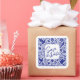 An otomi talavera frame with its intricate floral and bird motifs. The monochromatic palette lends a timeless, almost vintage feel, reminiscent of traditional porcelain designs. The use of delicate botanical illustrations enhances its sophisticated charm, creating a romantic and graceful aesthetic.