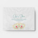The Mexican theme wedding RSVP envelope features two exquisite white hearts with a 3D effect, adorned with soft pastel Mexican flowers and delicate turquoise doves. The soft, cotton-like backdrop and elegant turquoise typography create a beautiful contrast, balancing modern elegance with vibrant colour.