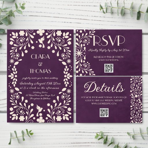 Mexican Purple Talavera Wedding QR code RSVP Card
