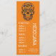 A colourful and cute menu template for a Mexican restaurant, bar or Mexican themed dinner party. This cute menu has a cute illustration of Mexican themed sugar skull day of the dead theme against a bright orange customisable background. The text is able to be customized to suit your needs.