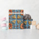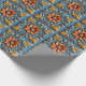 Mexican Spanish Floral Orange Blue Tile Pattern Wrapping Paper