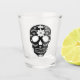 This shot glass has a traditional Mexican sugar skull design in black and white.