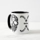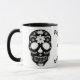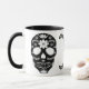 This unique Day of the Dead design captures key aspects of this Mexican celebration. A sugar skull is a tradition which features prominently in the Day of the Dead celebrations which begins at the end of October to the beginning of November. This black and white design is simple yet eye-catching. This mug can be personalized by adding your own name or text.