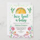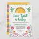 Looking for a colourful invitation to invite guests to a baby shower? This Mexican inspired watercolor design features a large taco, some cacti and Mexican style floral arrangements. I've added a taco 'bout a baby heading in a faux watercolor texture and some watercolor dots around the edges of the design. The back of the invitation is a very bright yellow, red and green striped pattern in a watercolor wash. This taco 'bout a baby baby shower invitation is ready to be personalized.