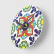 Mexican Talavera tile (red, green, yellow, blue) Round Clock