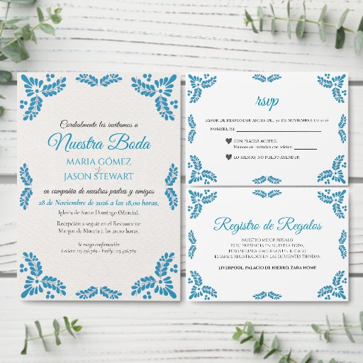 Talavera Turquoise Minimalist Spanish Wedding CardDesigned by Salwa Z.