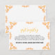 This Mexican Talavera Yellow Floral Minimalist Wedding Enclosure Card design features a minimalist approach with delicate, symmetrical yellow floral motifs placed in each corner and along the edges. The small, leaf-like shapes create a sense of movement while maintaining an airy, open space in the center, allowing for ample text placement. The simplicity and elegance of the pattern evoke traditional Talavera tiles, giving the design a classic Mexican artisanal feel.