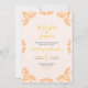 This Mexican Talavera Yellow Floral Minimalist Wedding Invitation design features a minimalist approach with delicate, symmetrical orange yellow motifs placed in each corner and along the edges. The small, leaf-like shapes create a sense of movement while maintaining an airy, open space in the center, allowing for ample text placement. The simplicity and elegance of the pattern evoke traditional Talavera tiles, giving the design a classic Mexican artisanal feel.